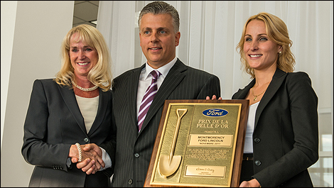 | Dianne Craig, présidente et chef de la direction chez Ford du Canada, Roger Desautels III, président de Montmorency Ford Lincoln, Jennifer Jane Monahan, présidente de Gestion Ray Monahan (Photo: Alain Rinfret) |